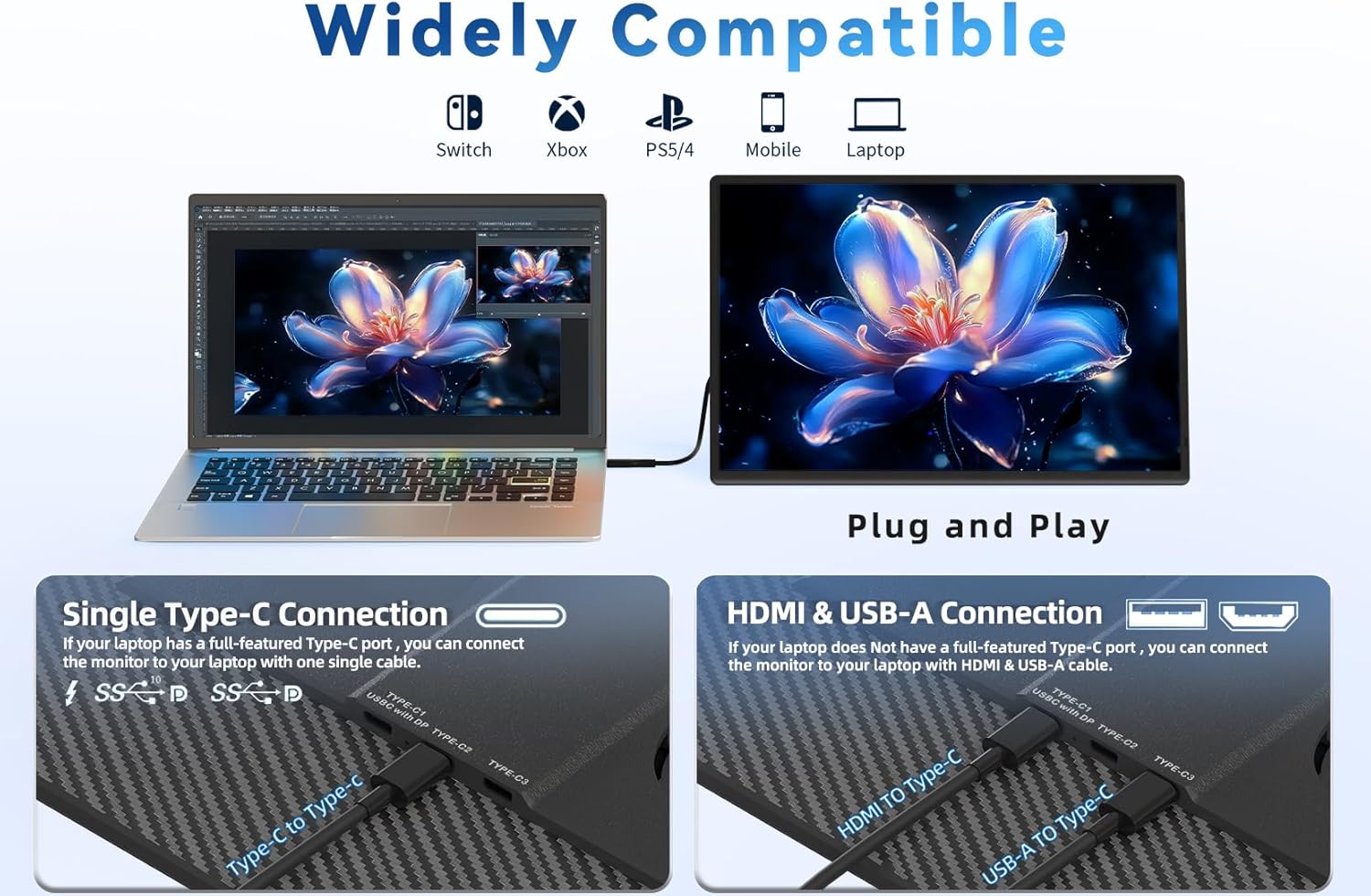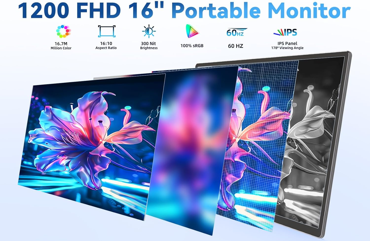 Écran portable AOKER 16" pour ordinateur portable - 1200P FHD