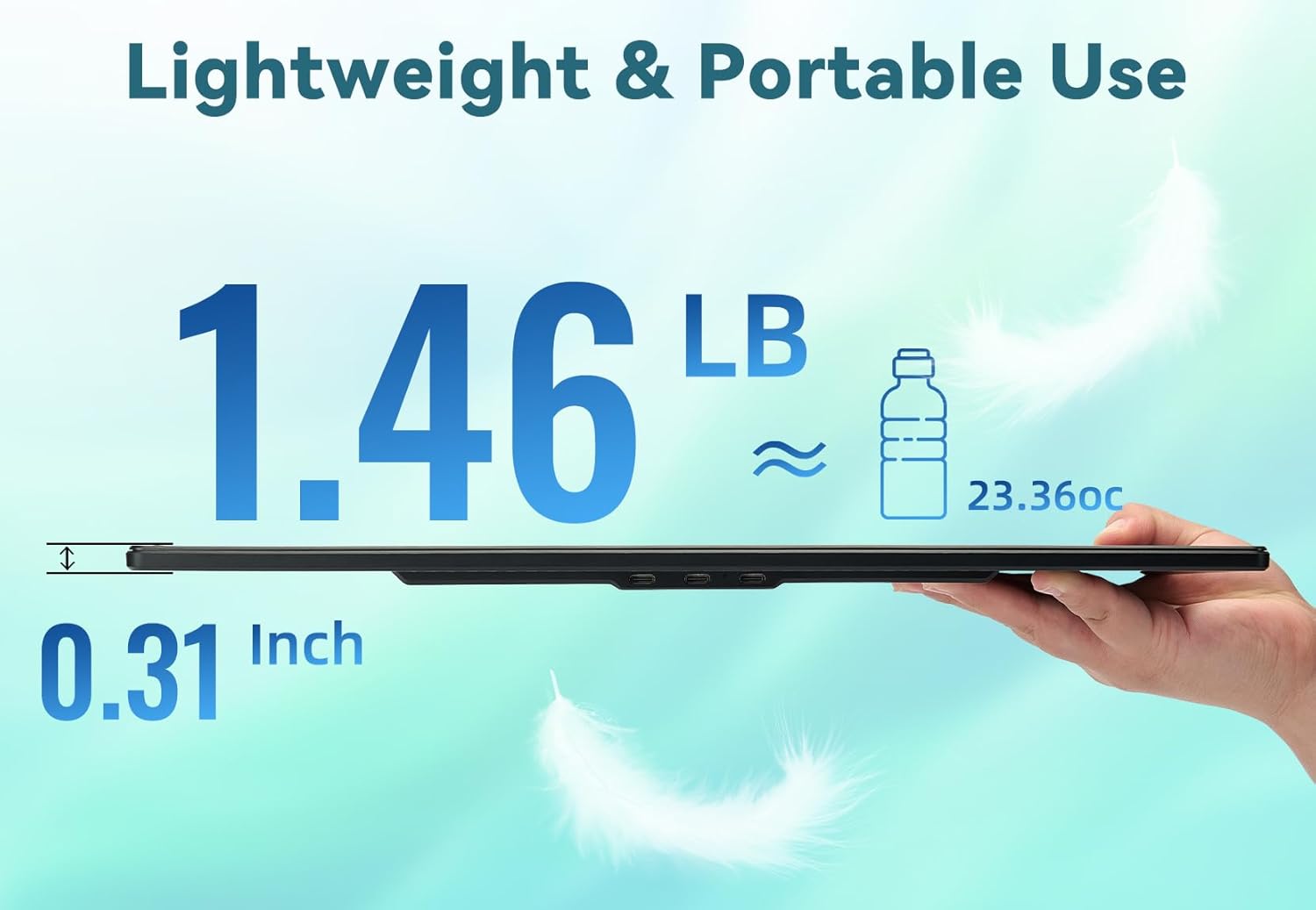 Avec seulement 650 g, cet écran est aussi léger qu'une bouteille d'eau de 23,36 ºC. Son épaisseur de seulement 8 mm le rend incroyablement facile à transporter. Pour vos déplacements professionnels ou vos voyages d'affaires, cet écran est indispensable. Il n'alourdit pas vos bagages et, grâce à sa finesse, il prend peu de place. Que vous partiez pour un court ou un long voyage, vous profiterez des avantages d'un grand écran sans les inconvénients d'un appareil lourd et encombrant.