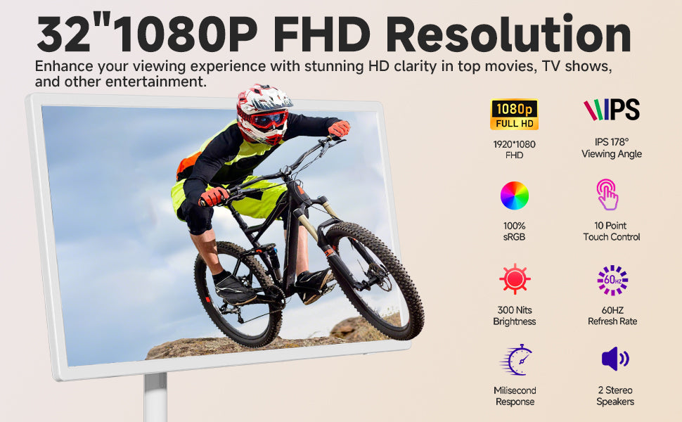 Enhance your viewing experience with a breathtaking 32-inch touchscreen offering 300 nits brightness, a 60Hz refresh rate, and 100% sRGB color accuracy for lifelike visuals. With a lightning-fast response time in milliseconds, you’ll enjoy smooth, lag-free performance, while the dual stereo speakers provide rich, immersive audio. Ideal for watching movies, gaming, or tackling creative projects.