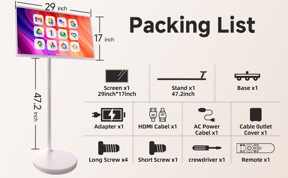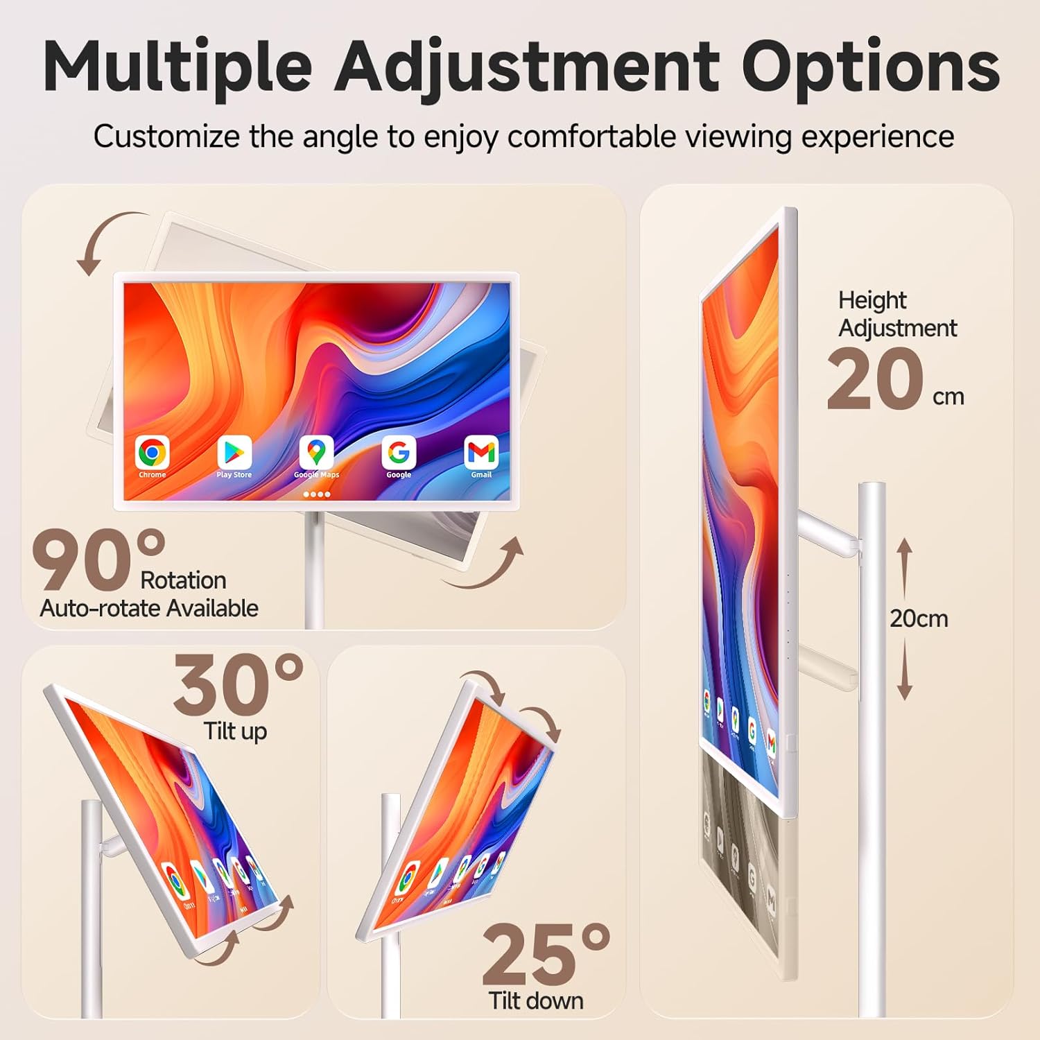 Customize your viewing experience with a rolling stand that adjusts up to 20cm in height and a full-motion mount that allows for a 25° tilt down, 30° tilt up, and 90° rotation. With wireless casting, Type-C, USB-A, and HDMI ports, this TV easily connects to your devices, enabling multi-screen streaming and effortless content sharing.