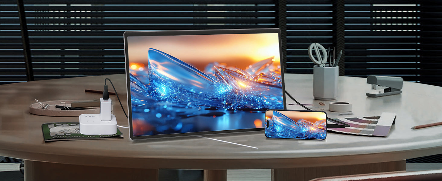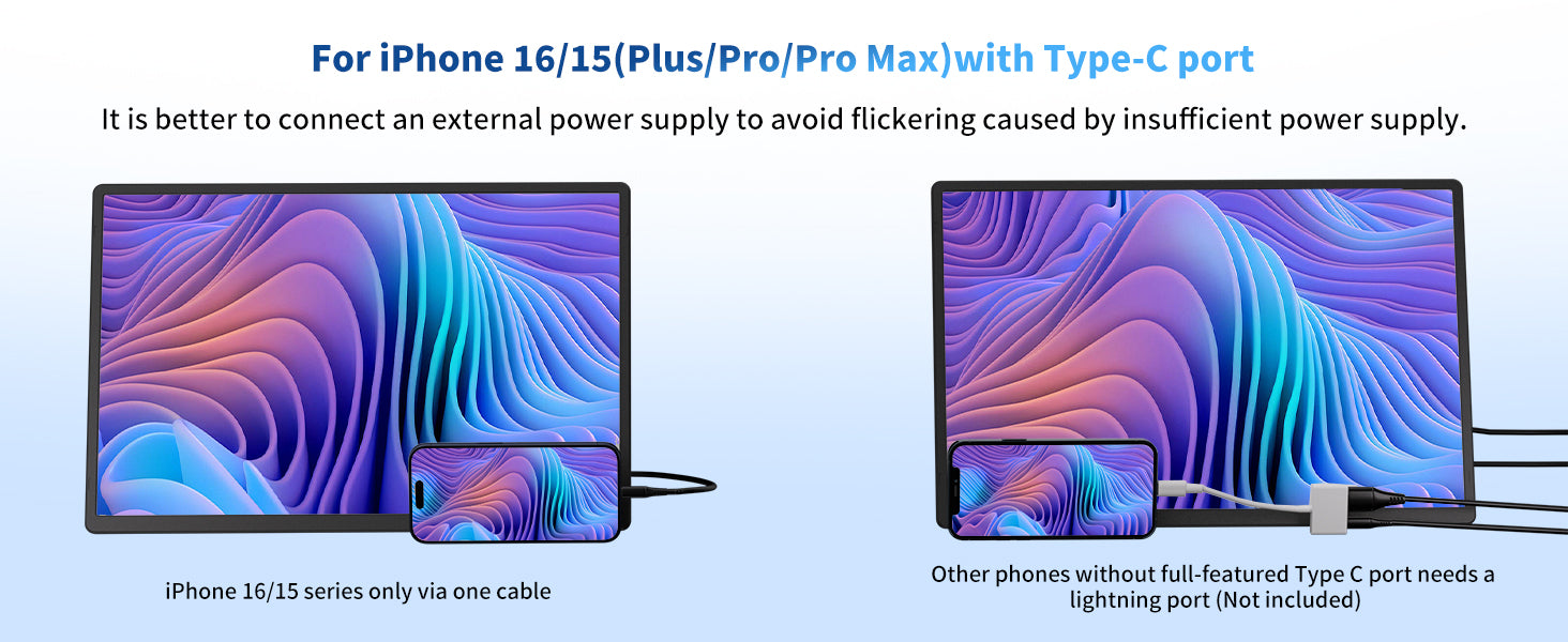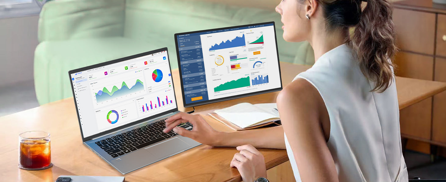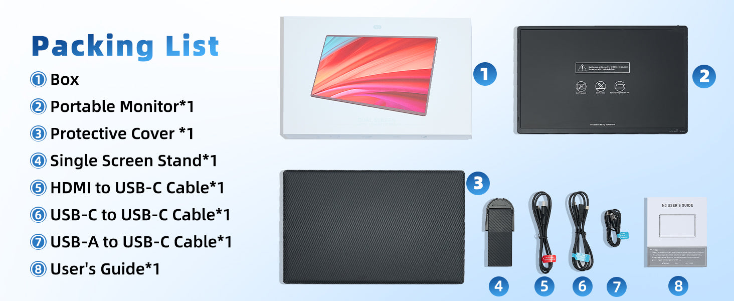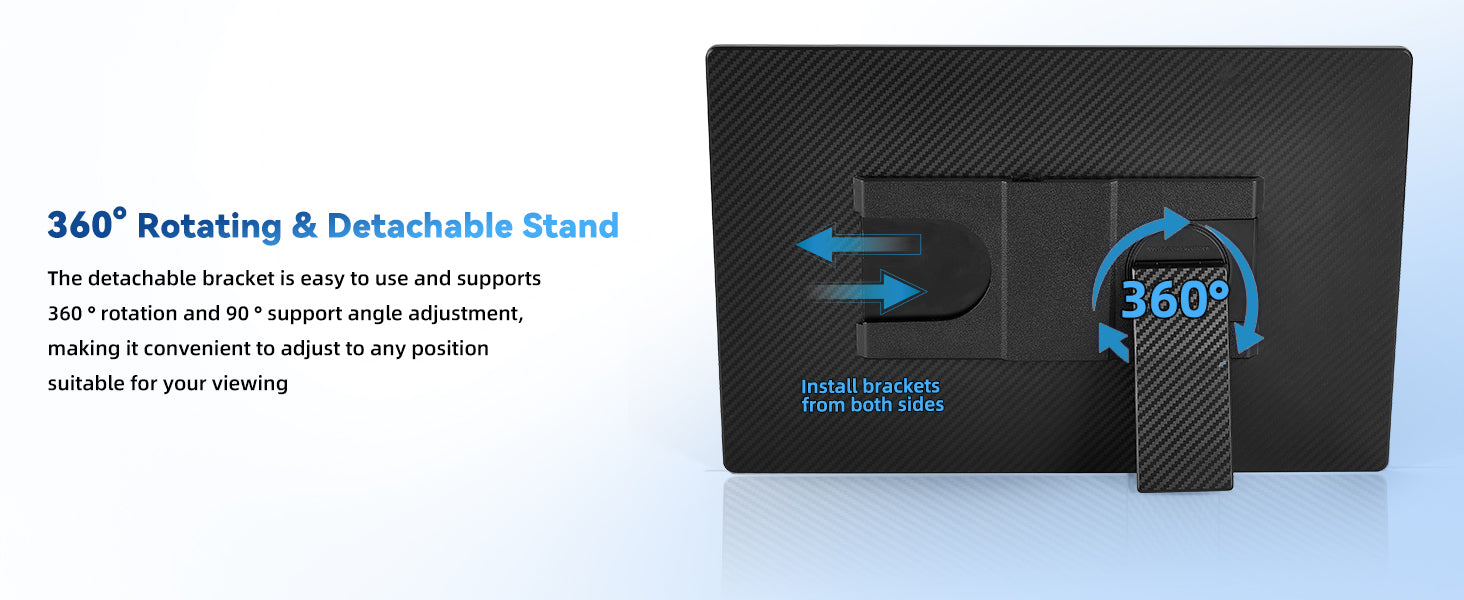 This portable computer screen features a stand that can be tilted up to 90° and rotated a full 360°, giving you the flexibility to position it exactly how you want. With slots on both sides, you can easily switch between horizontal and vertical orientations, making it perfect for everything from spreadsheets to social media. And with three screen modes—Duplicate, Extend, and Second Screen—you can tailor your setup to fit your needs. This monitor is your loyal partner. We offer a 365 day warranty to protect your use.