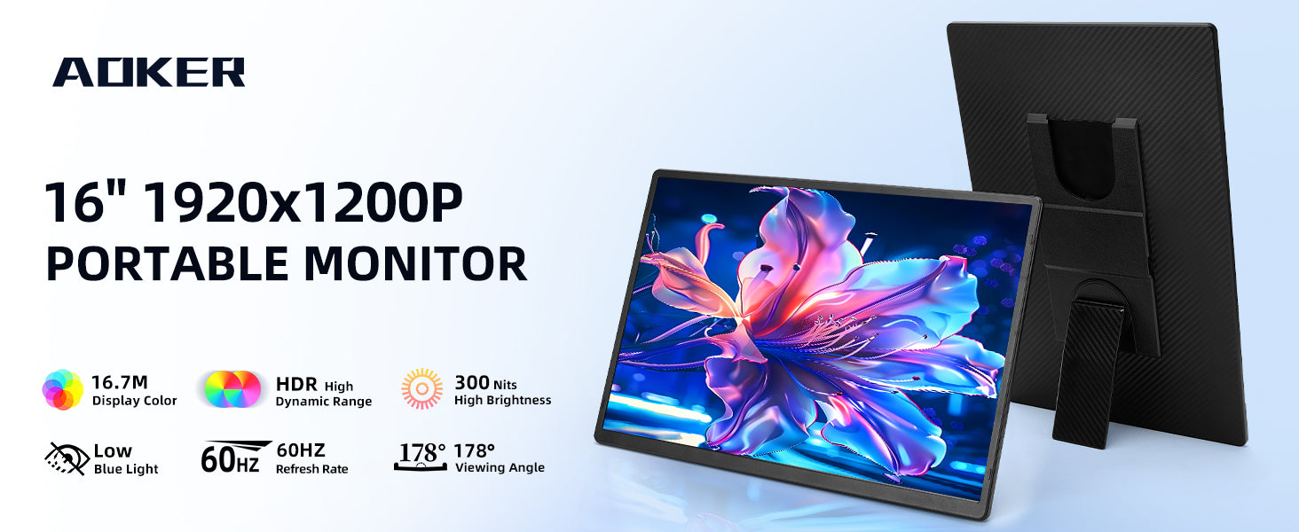 AOKER 16" Portable Monitor for Laptop - 1200P FHD