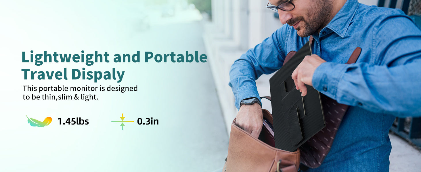 At just 1.46lb, this display is as light as a 23.36oc water bottle. It's only 0.3 inches thick. This makes it incredibly easy to carry. If you need to travel or take business trips, this display is a must - have. It won't add any extra weight to your luggage, and its thin profile means it won't take up much space. Whether you're going on a short trip or a long-distance journey, you can enjoy the benefits of a large screen without the inconvenience of a heavy, bulky device.