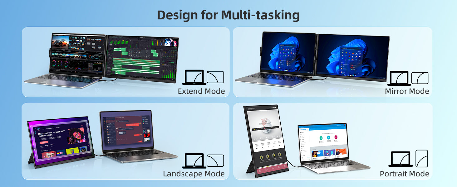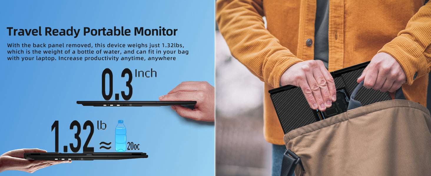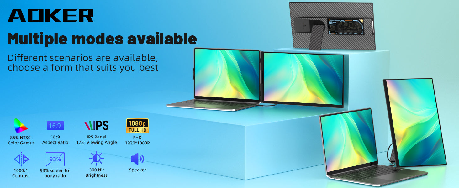 AOKER portable monitor offers a detachable stand with 360° rotation for stable support, allowing easy switching between horizontal and vertical positions. Designed to fit laptops ranging from 13 to 17.3 inches, it is compatible with Mac, Windows, Android, Linux, Switch, and Chrome, enhancing portability and versatility. Products undergo rigorous pre-sale inspections to ensure quality.We offer a 365 day warranty to protect your use.