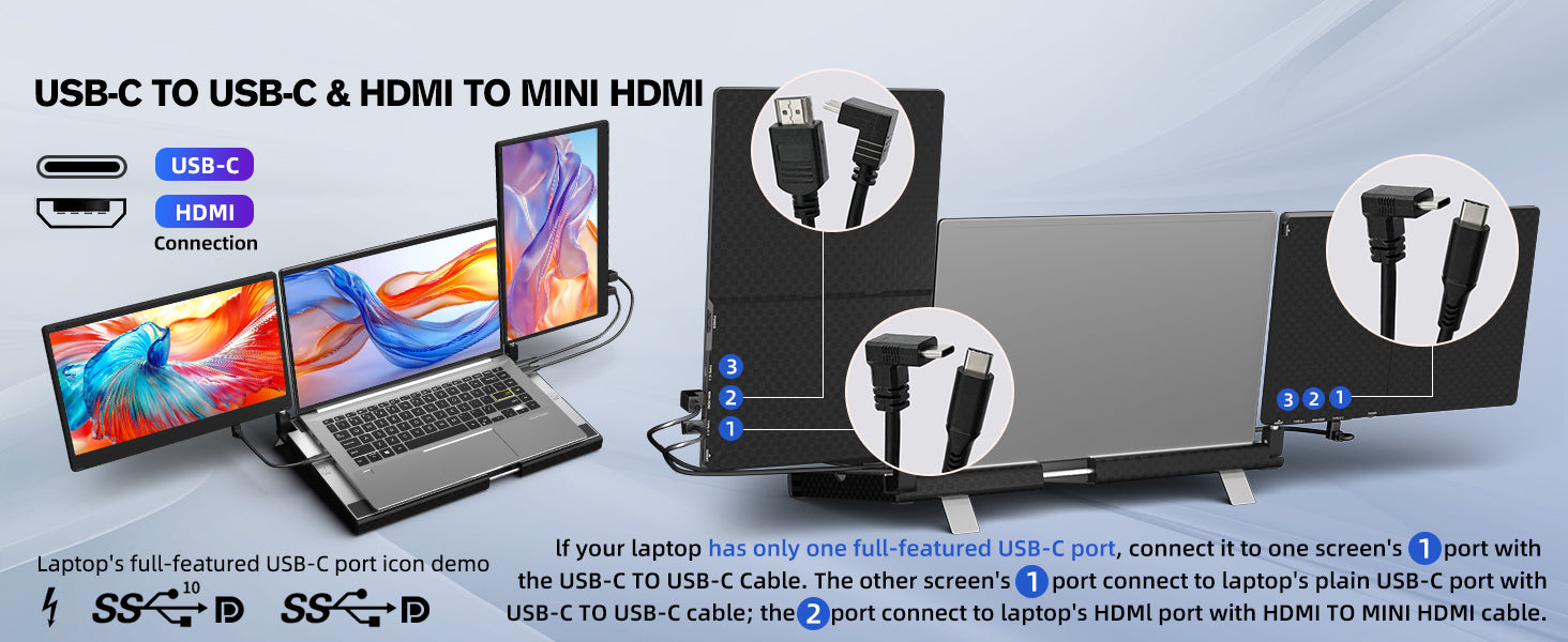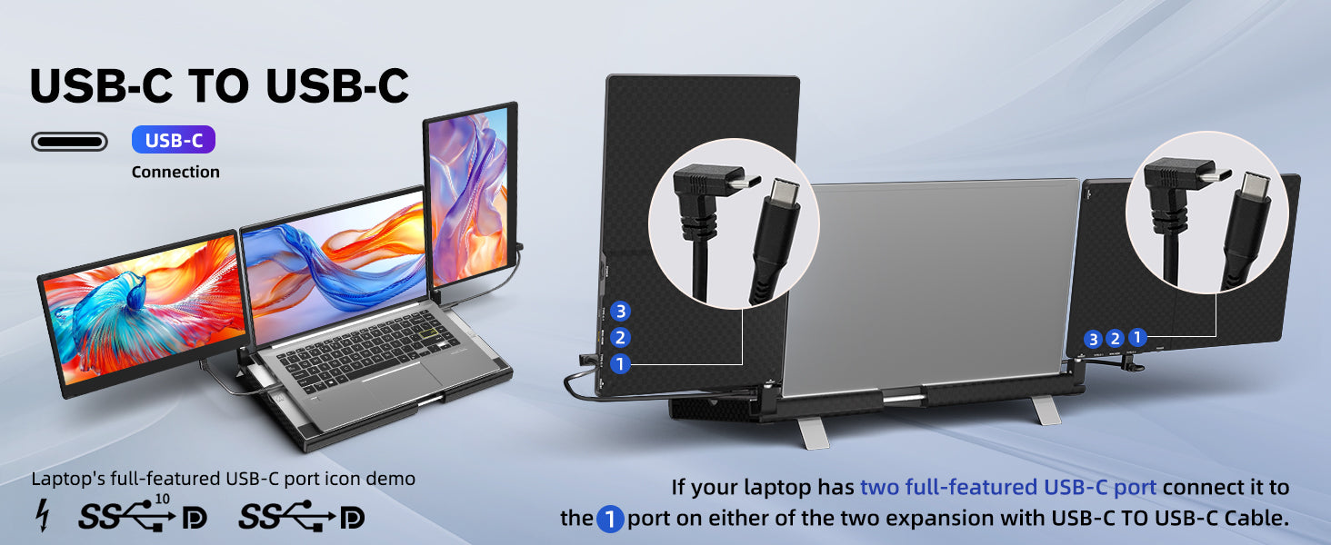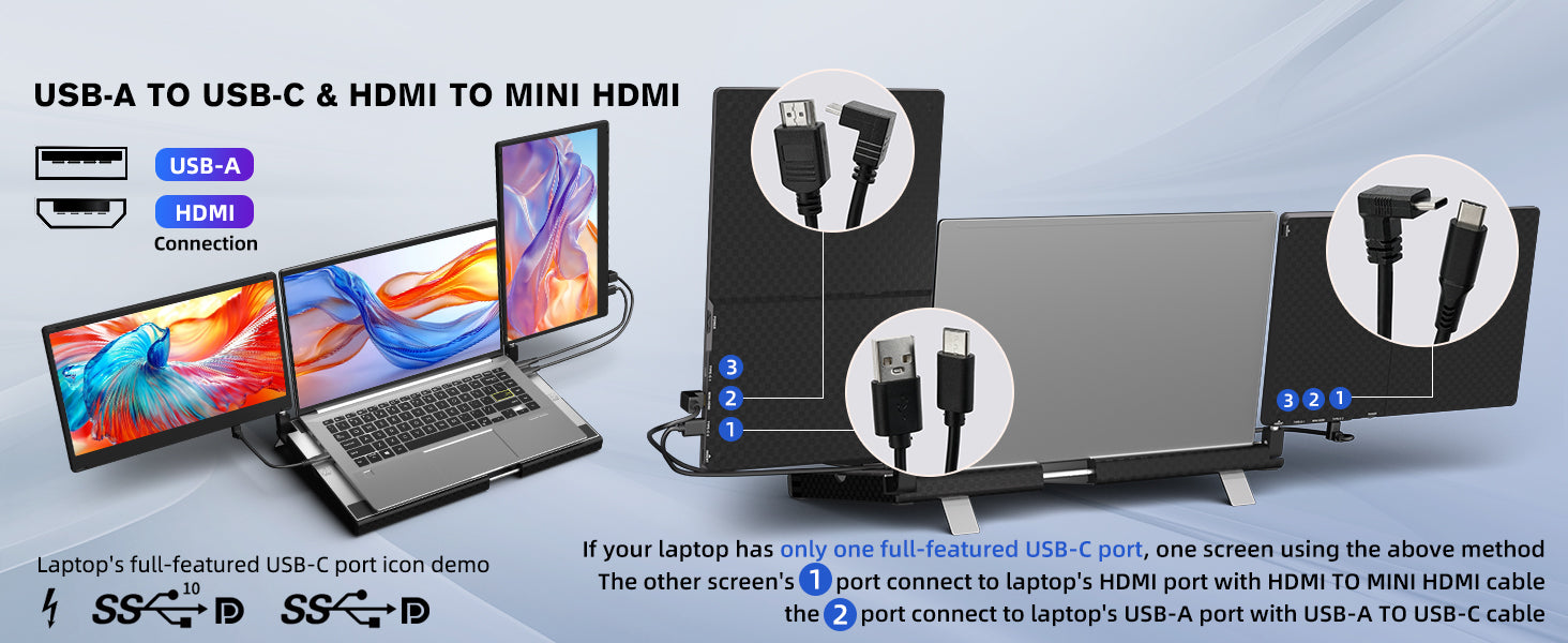 Tips: Not compatible with Macbook with M1/M2/M3 chips. If you are not sure if the laptop extender works with your laptop, having “No Signal” or “Power Saving” issues or your laptop has no enough ports, please message our service team for solutions